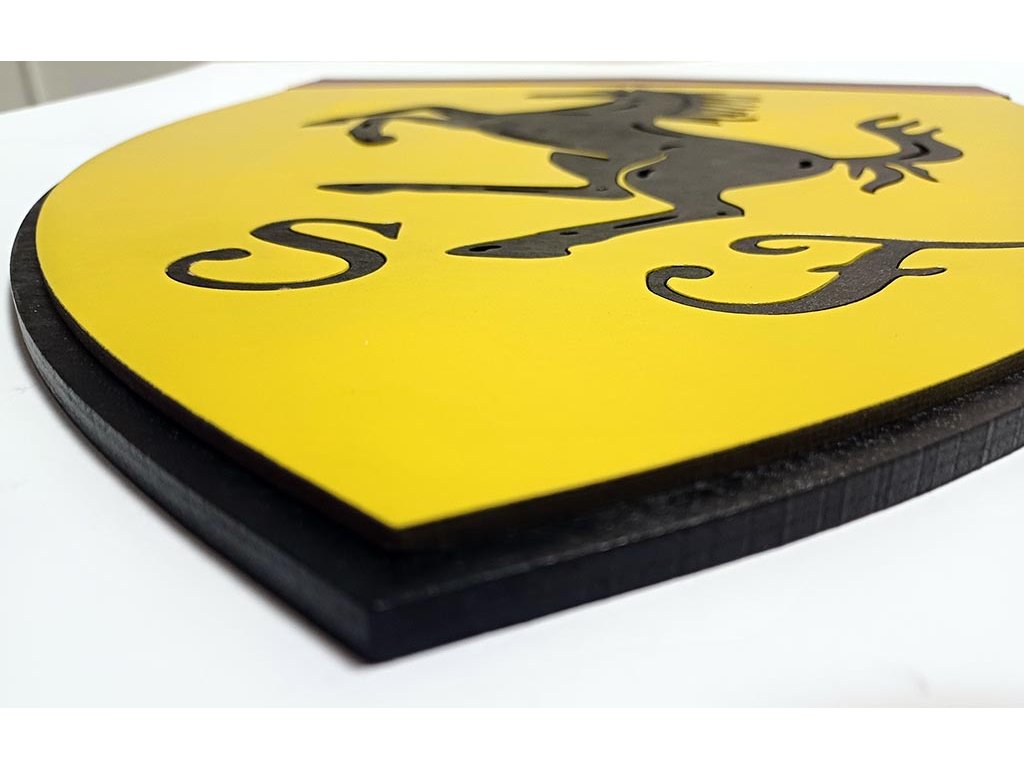 Ukažte svou vášeň pro legendární italskou automobilku Ferrari s touto úžasnou 3D dřevěnou cedulí. Precizně zpracovaný znak Ferrari je vyroben z kvalitní překližované desky ze dřeva a dodá vašemu interiéru jedinečný a stylový nádech.