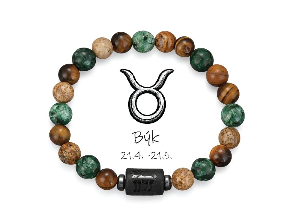 Astrologický náramek s přírodními kameny - unisex - znamení Býk 21.4-21.5.