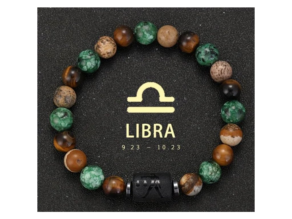 Astrologický náramek s přírodními kameny - unisex - znamení Váhy 23.9 - 23.10.