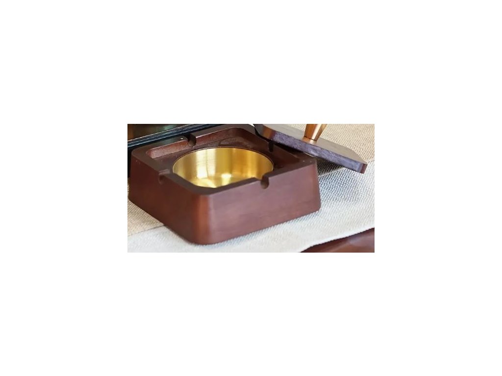 Bambusový hranatý popelník s víkem 12x12cm, zlatý