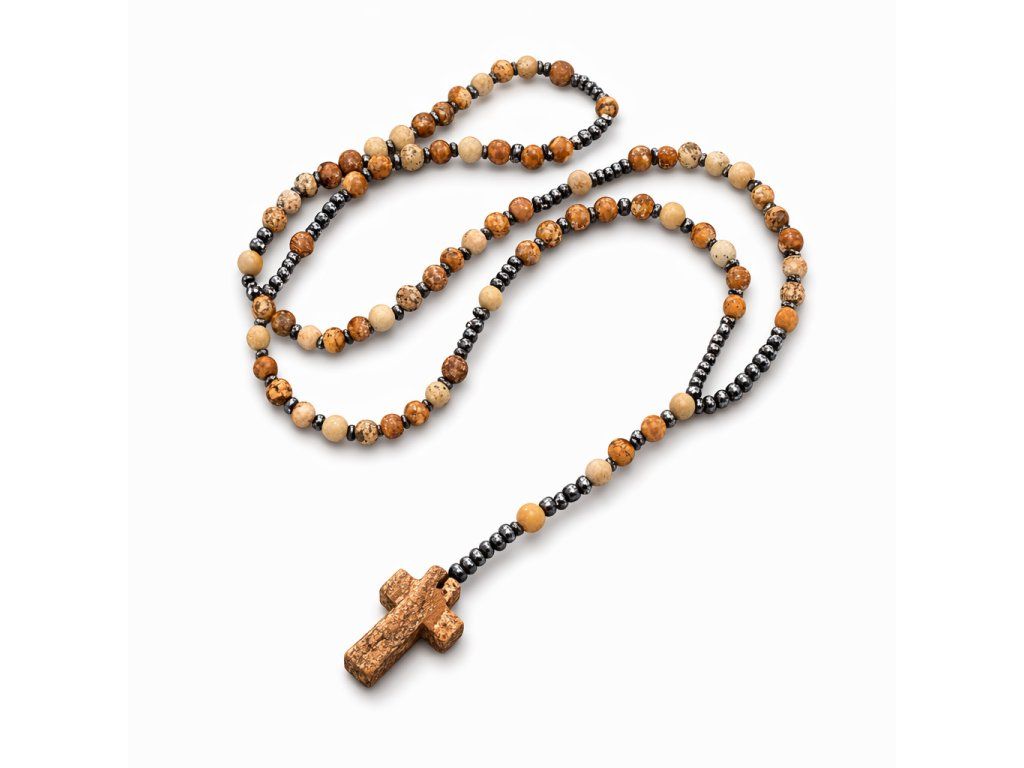Materiál: přírodní korálky + křížek