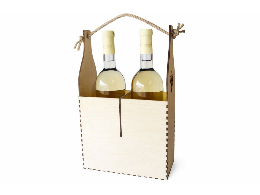 Box je vyroben z kvalitní březové překližky a disponuje pevnými lepenými spoji, které zajišťují stabilitu i při plném zatížení. Vnitřní přepážka odděluje jednotlivé láhve a chrání je před vzájemným nárazem. Častým dotazem zákazníků je, zda se do boxu vejdou dvě standardní vinné láhve – box je konstruován právě pro běžné láhve o objemu 0,75 l.