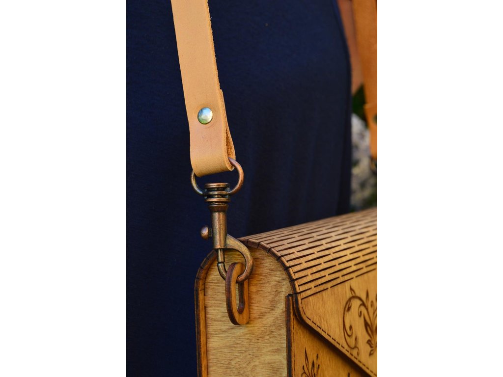 Už vás nebaví tuctové kabelky bez duše? Toužíte po doplňku, který s vámi bude vyprávět příběh a zaujme na první pohled? Pak je tato celodřevěná kabelka z překližky přesně pro vás. Ručně zpracovaná s láskou k detailu, tato kabelka snoubí přírodní krásu dřeva s moderním designem. Hladký povrch překližky v sobě ukrývá překvapivou lehkost a zároveň pevnost, která ochrání vaše cennosti. Vnitřek kabelky je pečlivě vypolstrovaný, takže se o vaše drobnosti nemusíte bát.