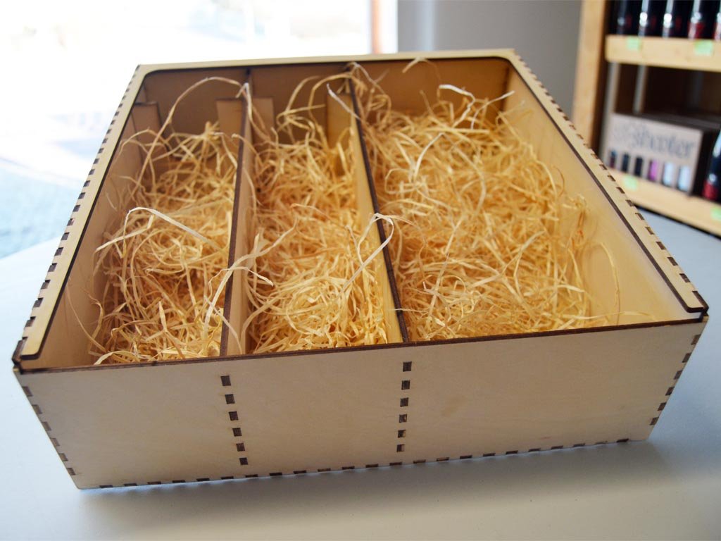 Dárková krabička s víkem vhodná jako dárkové balení pro 2 láhve vína a prostorem pro drobné pochutiny s víkem pro kompletaci. Víko lze po dohodě po gravírovat. Pokud nebudete mít zájem o gravírování, tak dojde víko bez gravírování. Součástí je také dřevěná vlna pro výplň. Při větším odběru (velkoobchod a firmy) individuální ceny a podmínky!!!