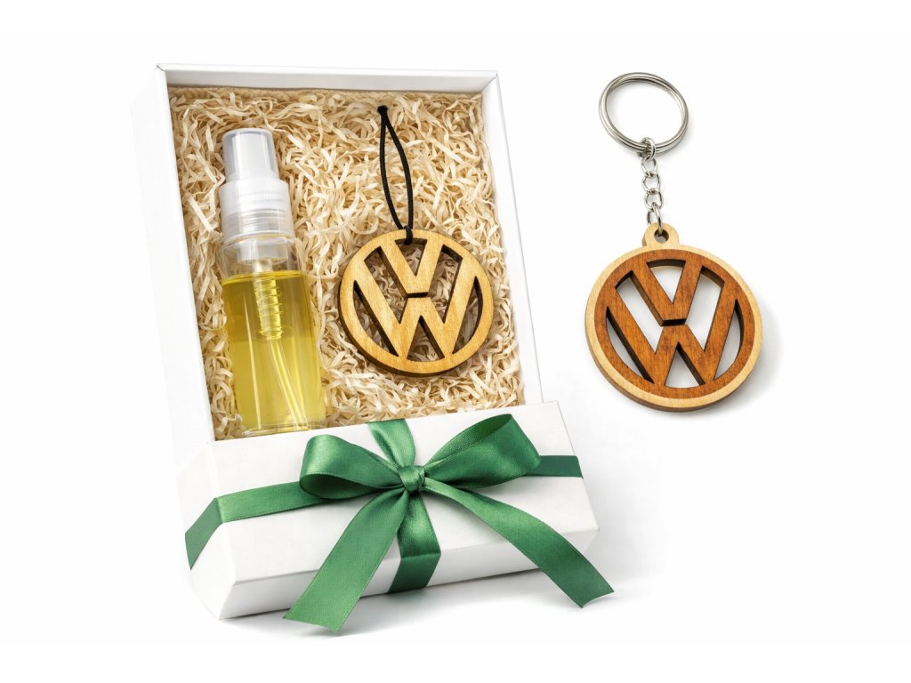 Dárková sada Volkswagen – vůně do auta & dřevěný přívěsek