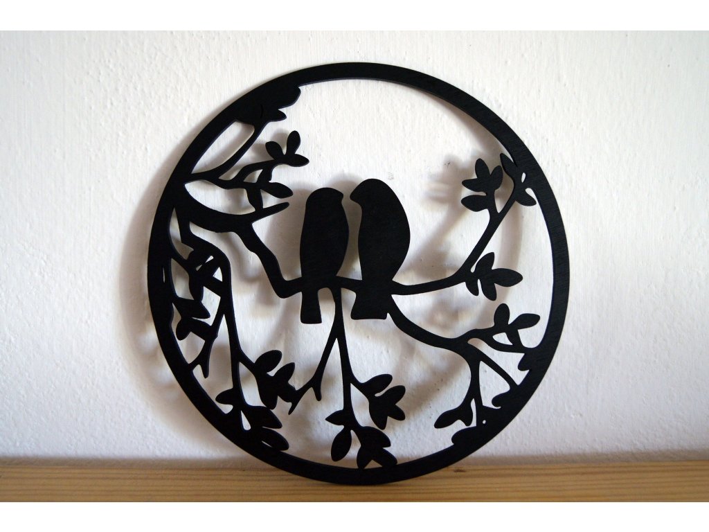 Kulatá dekorace Dva ptáčcci sedící na větvi v kulatém ohraničení. V nabídce v několika průměrech a barvách.