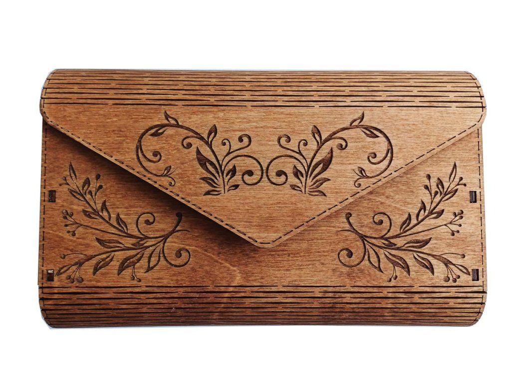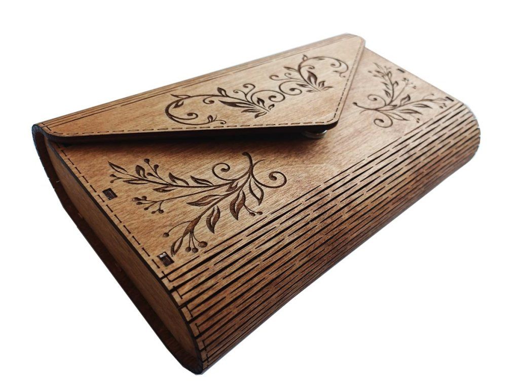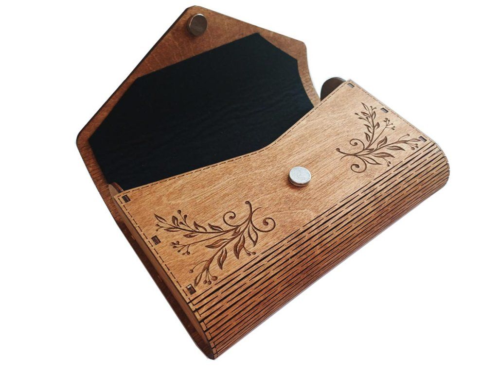 Originální dřevěná kabelka z kvalitní překližky v elegantním odstínu tmavý palisandr je dokonalým doplňkem pro každou ženu, která chce vyniknout. Precizní zpracování a detailní gravírování s přírodním motivem dodávají kabelce jedinečný a luxusní vzhled.