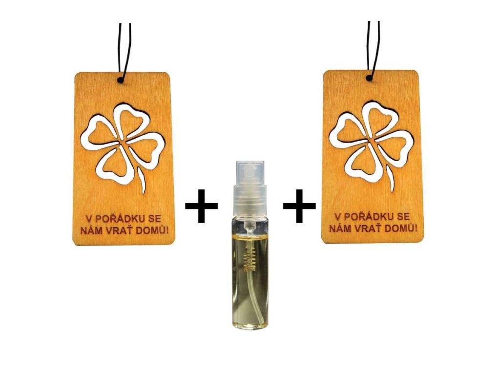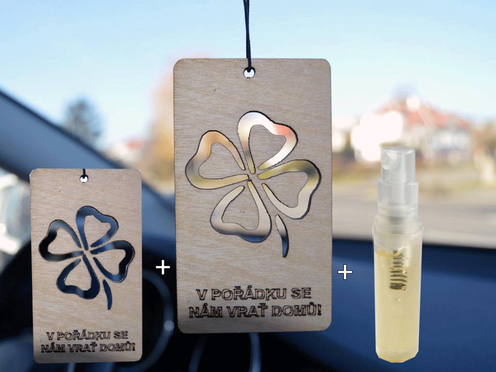 Dřevěná vůně do auta - V pořádku se vrať domů! 2ks + rozprašovač 1ks