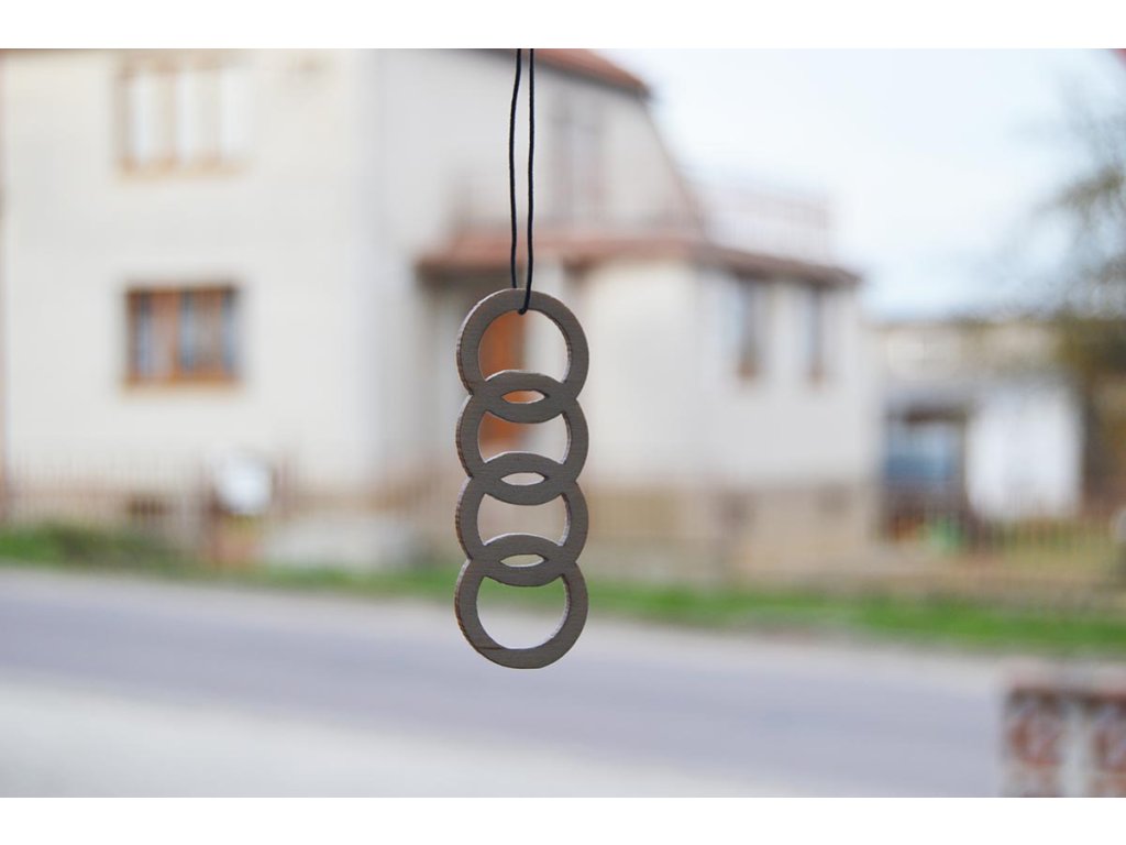 Voňavka ve tvaru znaku osobního auta Audi. Originální dárek pro fanoušky a vášnivé řidiče. Vůně do auta vyrobená ze dřeva se svým jedinečným a elegantním vzhledem. Voňavka je napuštěna parfémem určeným pro výrobu vůní do aut a je tak dlouhotrvající. Dřevěná vůně je zabalena do zavařeného PE sáčku a součástí je pružný provázek na pověšení na zpětné zrcátko vozidla. Lze dokoupit i parfém na dovonění.