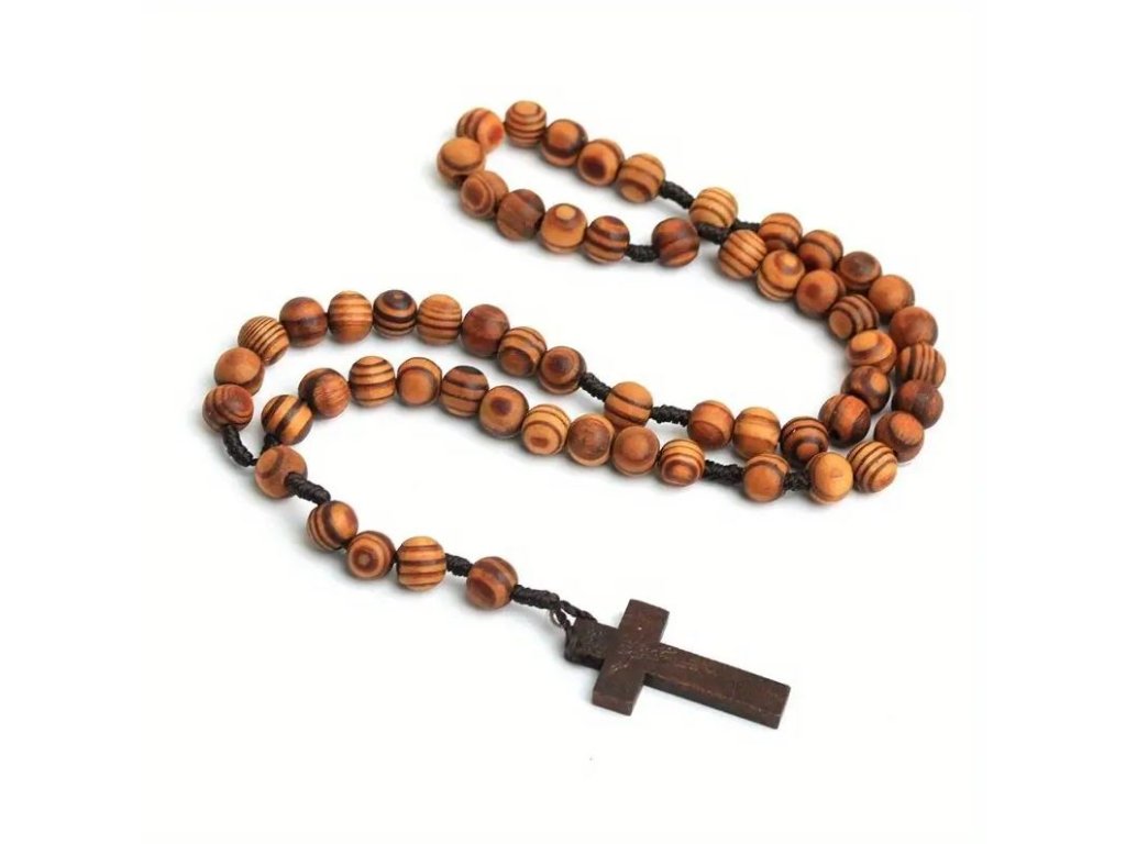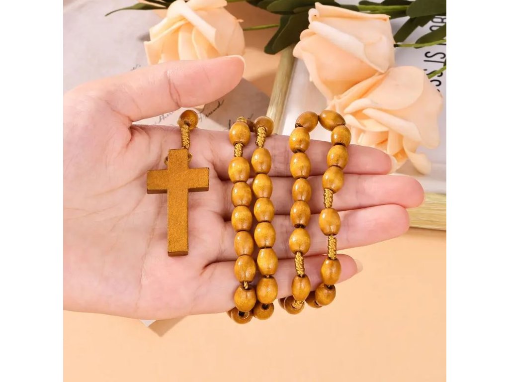 Autentický Materiál: Vyrobeno z přírodního dřeva, které dodává každému růženci jedinečný charakter a dlouhou životnost.