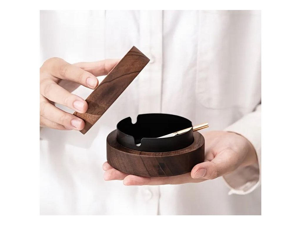 Dřevěný popelník z exotického dřeva s vnitřní kovovou části a magnetem pro snadné oddělání a vypláchnutí. Víko, které je součástí popelníku snadno zakryje nedopalky a zamezí šíření zápachu do okolí. Průměr 9cm. Ošetřeno olejem.