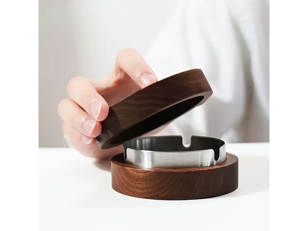 Dřevěný popelník z exotického dřeva s vnitřní kovovou části a magnetem pro snadné oddělání a vypláchnutí. Víko, které je součástí popelníku snadno zakryje nedopalky a zamezí šíření zápachu do okolí. Průměr 9cm. Ošetřeno olejem.