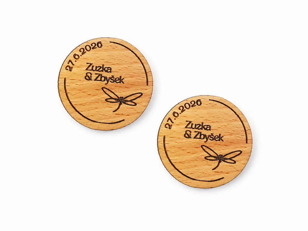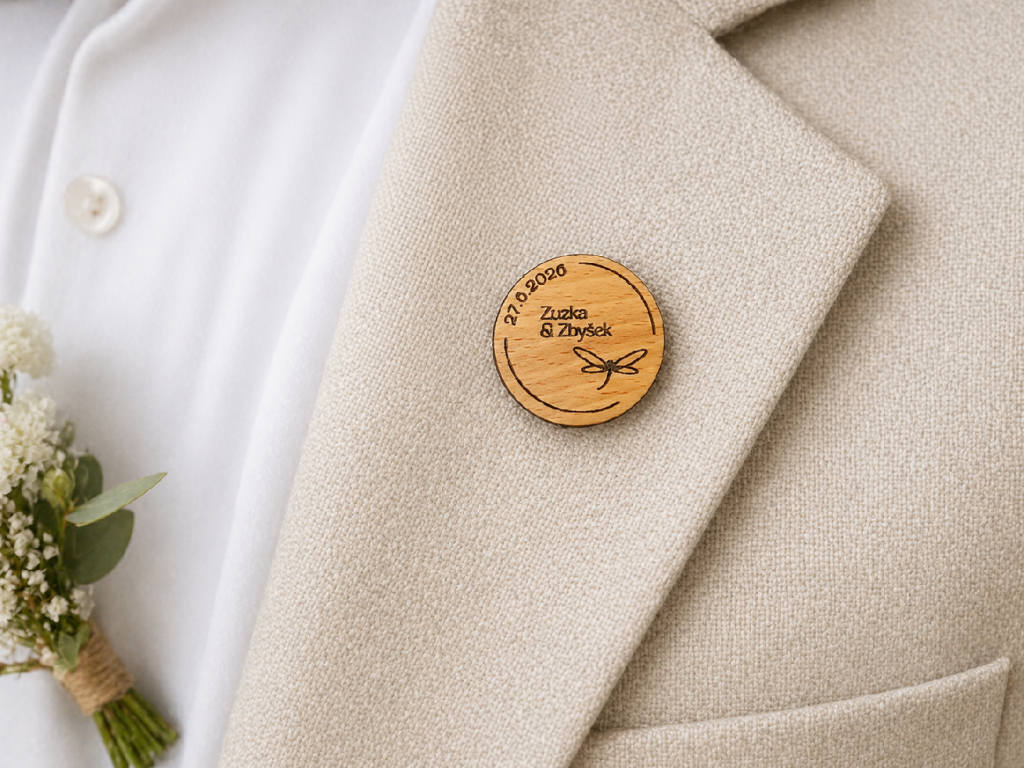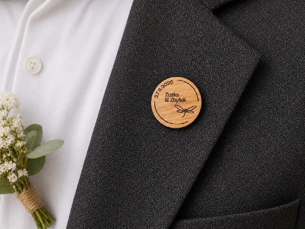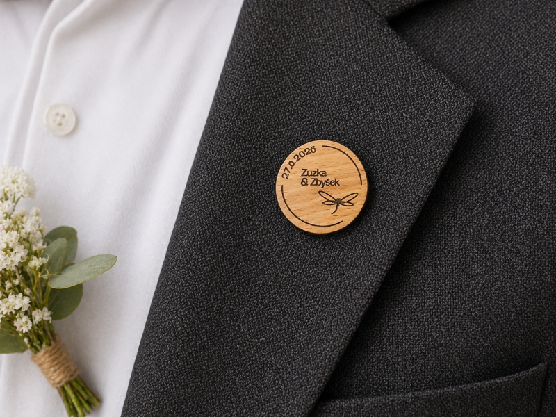 Originální svatební vývazek z masivního bukového dřeva je krásnou a netradiční alternativou ke klasickým textilním vývazkům. Každý vývazek je precizně gravírovaný se jmény, iniciály nebo datem svatby podle přání konkrétního páru, díky čemuž vzniká jedinečná památka na váš velký den.