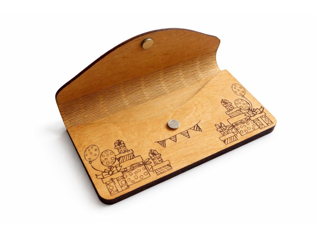 Obálka na peníze k narozeninám ze dřeva – magnetické zavírání