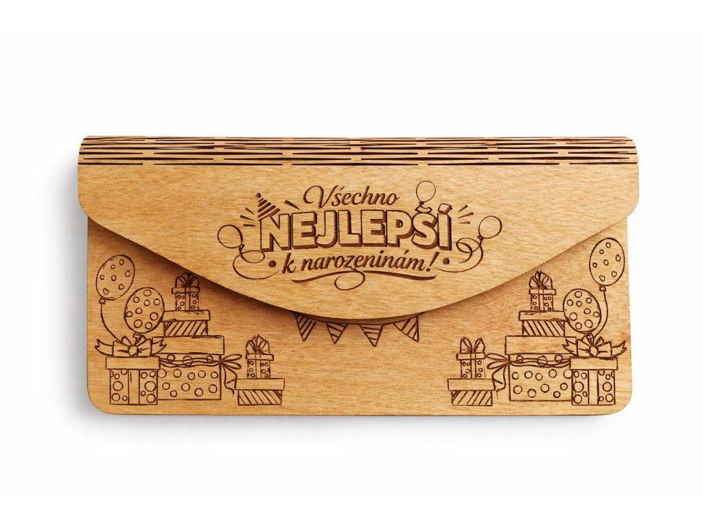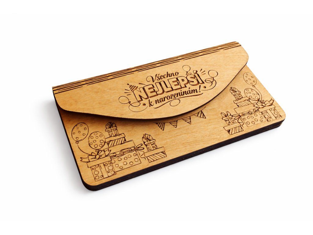 Hledáte originální způsob, jak darovat peníze k narozeninám? Tato dřevěná obálka k narozeninám je perfektní volbou, která nahradí klasické papírové obálky a udělá z darování zážitek.