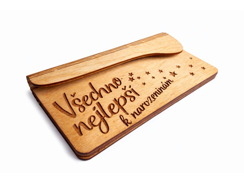 Hledáte originální způsob, jak darovat peníze k narozeninám? Tato dřevěná obálka k narozeninám je perfektní volbou, která nahradí klasické papírové obálky a udělá z darování zážitek.