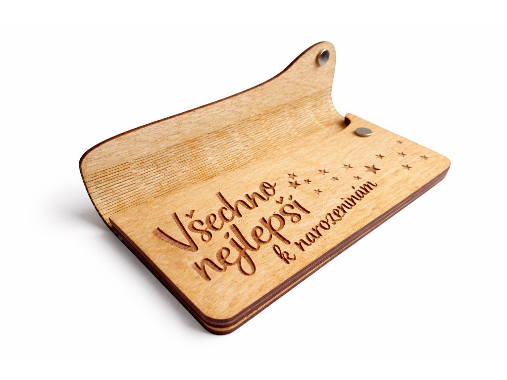 Obálka na peníze k narozeninám ze dřeva "Všechno nejlepší.." – magnetické zavírání