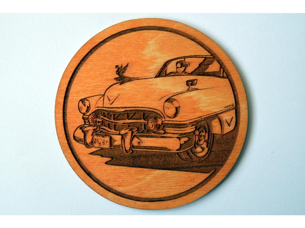 Originální podtácek pod sklenici piva, kávy nebo různých nápojů s gravírovaným motivem aut, veteránů nebo pick-upů. Průměr 8cm. Na výběr z několika variant. Ošetřeno proti vodě. Vyrobeno z 3mm překližky.