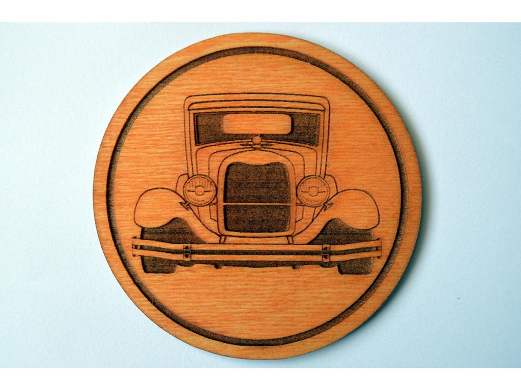 Originální podtácek pod sklenici piva, kávy nebo různých nápojů s gravírovaným motivem aut, veteránů nebo pick-upů. Průměr 8cm. Na výběr z několika variant. Ošetřeno proti vodě. Vyrobeno z 3mm překližky.