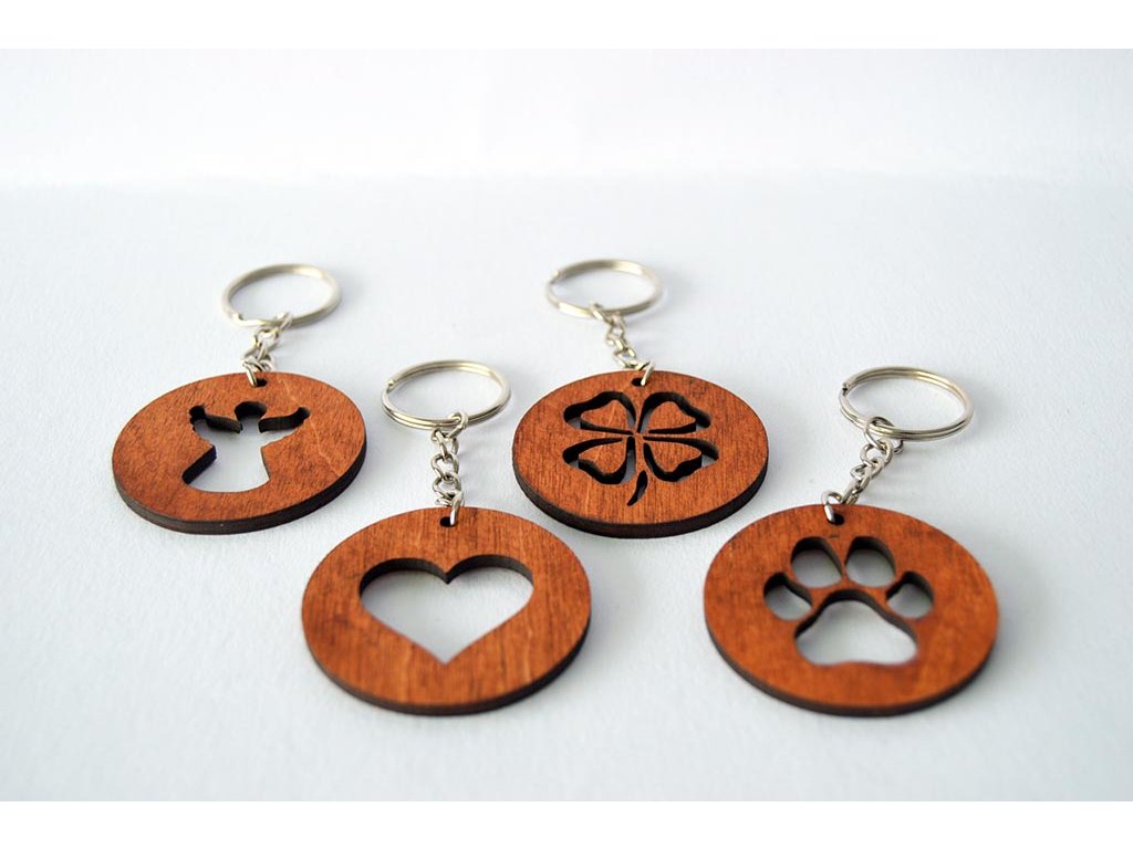 Přívěsek na klíče v kolečku s různými tvary dle výběru. Ošetřeno barevným olejem.