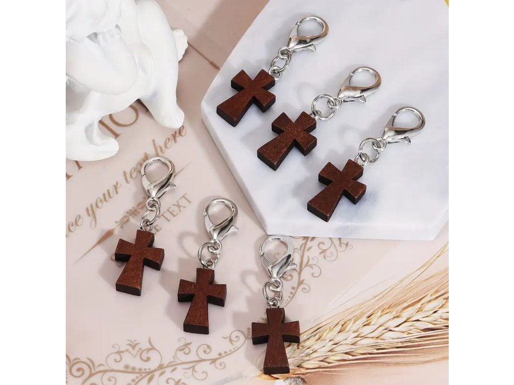 Přívěsek s křížkem a klipem na tašku 50x15mm 1ks