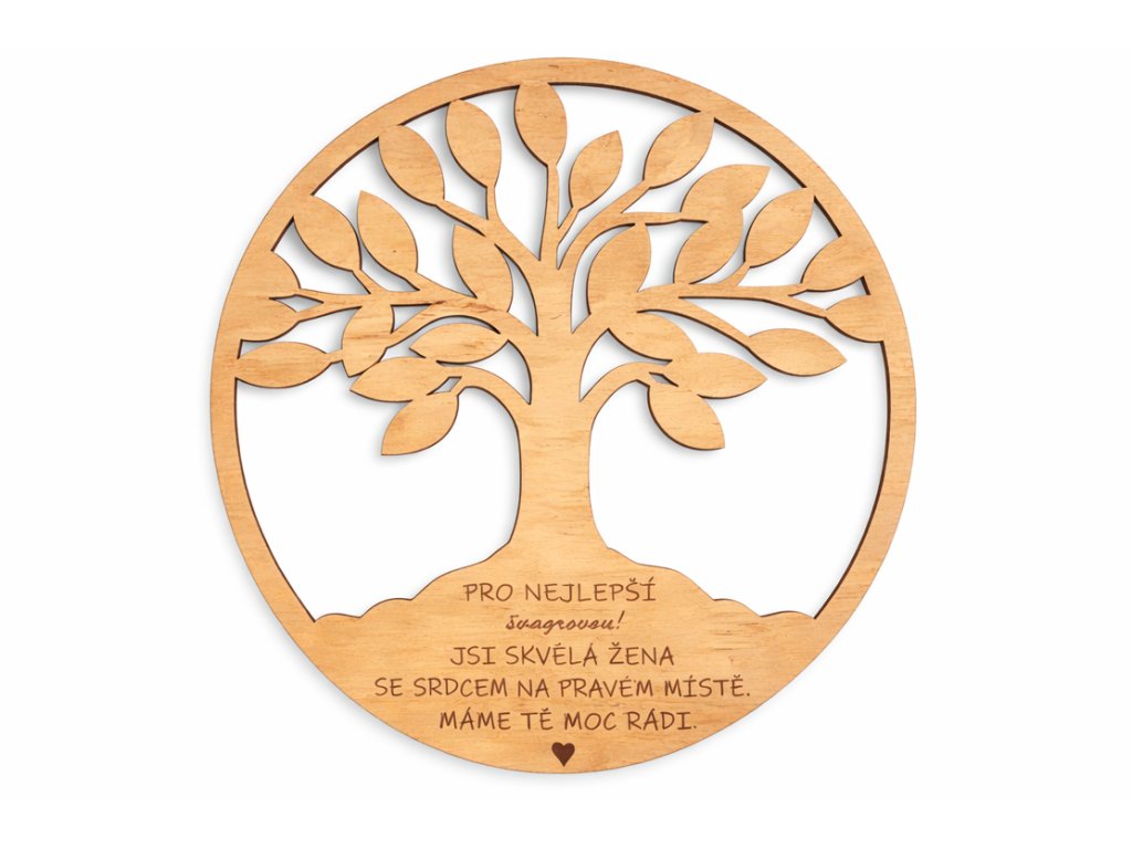 Představte si ten dojem, když vaše maminka, babička nebo blízká přítelkyně rozbalí tento krásný a smysluplný dar. Strom života, s laserem precizně vyřezaný a pečlivě lakovaný, bude s láskou zdobit její domov a připomínat jí kořeny, rodinu a vše, co je v životě důležité.