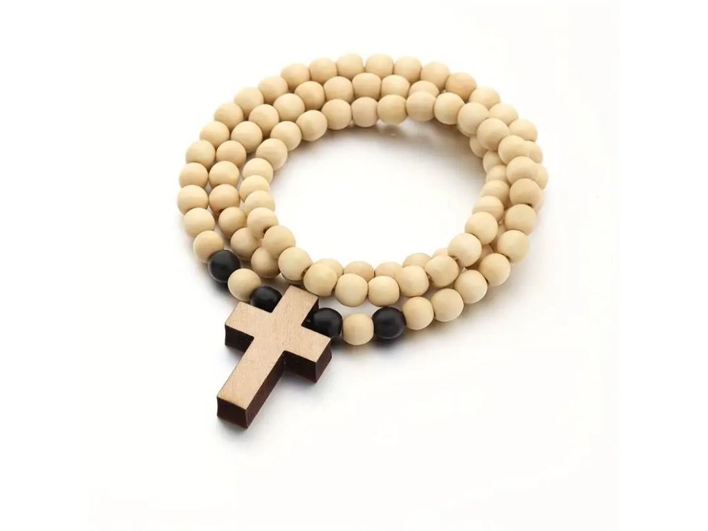 Přírodní Krása Světlého Dřeva: Hlavní část růžence tvoří hladké, světlé dřevěné korálky, které jsou příjemné na dotek a dodávají šperku lehký a čistý vzhled. Jejich přírodní odstín přináší pocit tepla a pohody.