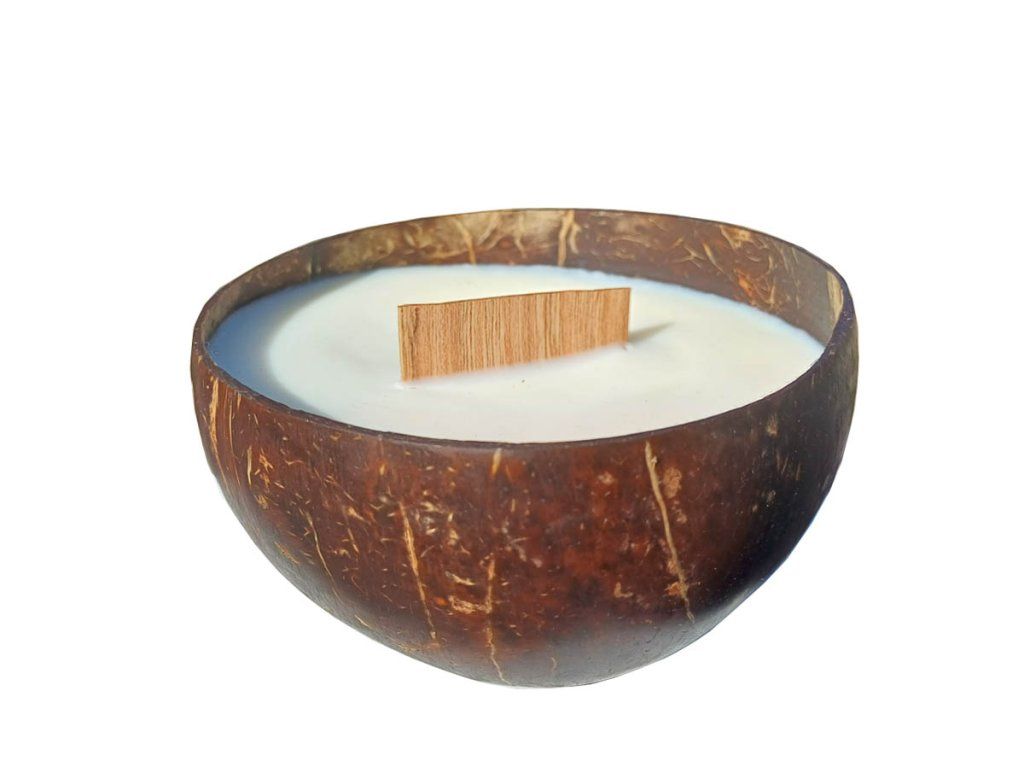 Kokosová miska dodává svíčce přírodní vzhled a zároveň zajišťuje, že každý kus je unikátní – žádné dvě svíčky nejsou úplně stejné.