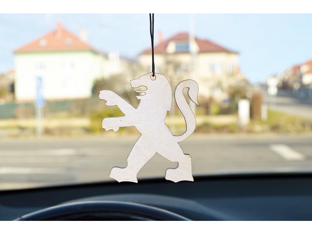 Voňavka ve tvaru znaku osobního auta Peugeot. Originální dárek pro fanoušky a vášnivé řidiče. Vůně do auta vyrobená ze dřeva se svým jedinečným a elegantním vzhledem. Voňavka je napuštěna parfémem určeným pro výrobu vůní do aut a je tak dlouhotrvající. Dřevěná vůně je zabalena do zavařeného PE sáčku a součástí je pružný provázek na pověšení na zpětné zrcátko vozidla. Lze dokoupit i parfém na dovonění.
