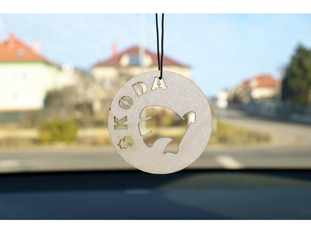Voňavka ve tvaru znaku osobního auta Škoda. Originální dárek pro fanoušky a vášnivé řidiče. Vůně do auta vyrobená ze dřeva se svým jedinečným a elegantním vzhledem. Voňavka je napuštěna parfémem určeným pro výrobu vůní do aut a je tak dlouhotrvající. Dřevěná vůně je zabalena do zavařeného PE sáčku a součástí je pružný provázek na pověšení na zpětné zrcátko vozidla. Lze dokoupit i parfém na dovonění.
